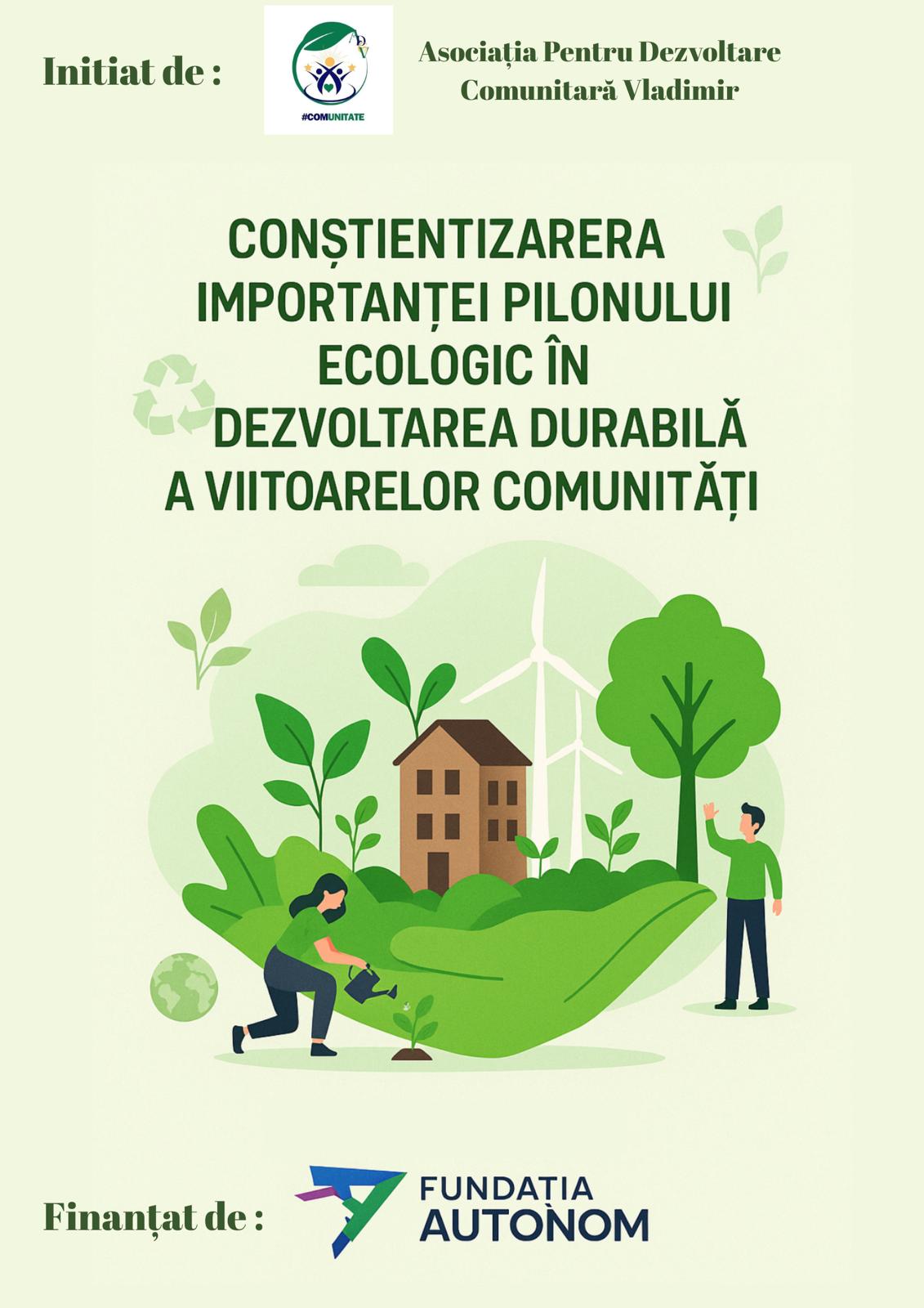 Asociația pentru Dezvoltare Comunitară Vladimir anunță cu entuziasm continuarea și extinderea proiectului „Conștientizarea importanței pilonului ecologic în dezvoltarea viitoarelor comunități” în anul 2025, datorită finanțării acordate de Fundația Autonom România, partener strategic în promovarea educației pentru sustenabilitate.