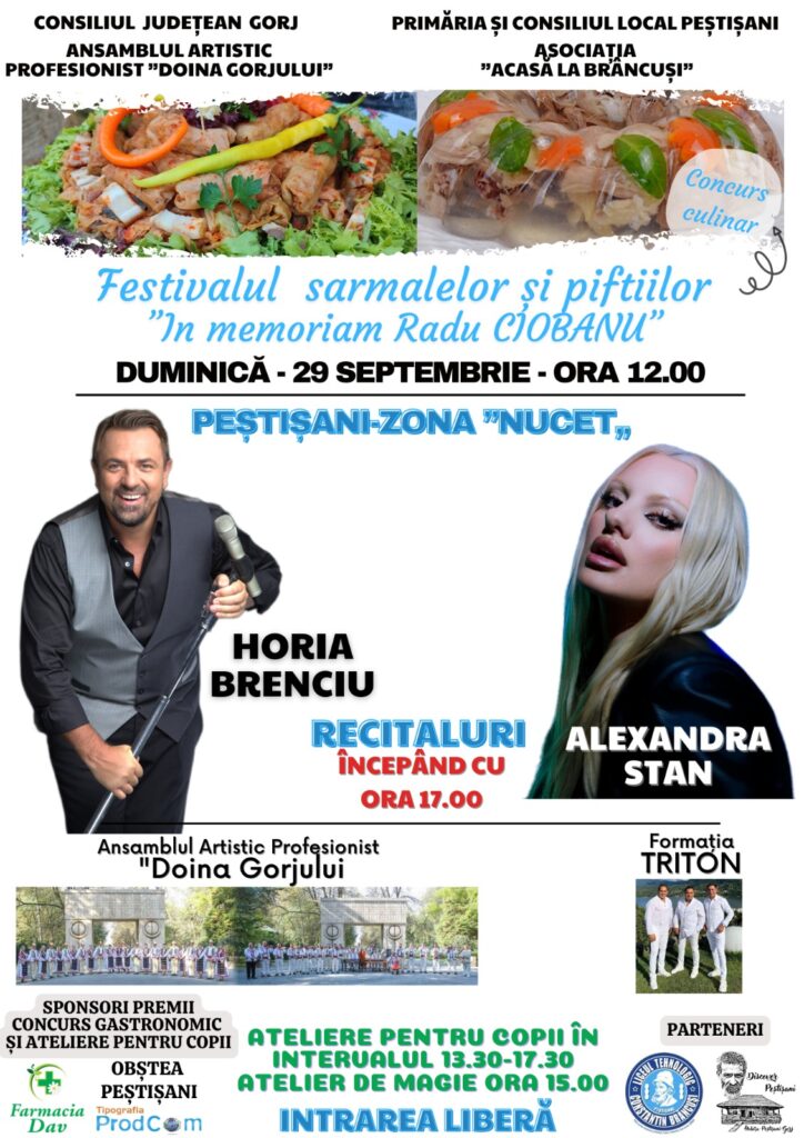 Festivalul Sarmalelor și Piftiilor „Radu Ciobanu” nu este doar despre mâncare, ci despre comunitate, tradiții și generozitate. Evenimentul este organizat în parteneriat cu Asociația „Acasă la Brâncuși” și Asociația Discover Peștișani, cu sprijinul Liceului Tehnologic Constantin Brâncuși.