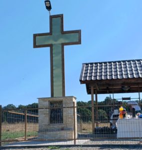 Lângă fântânii se înalță o cruce impresionantă, pe care se află o icoană a Sfântului Proroc Ilie Tesviteanul, realizată în mozaic, o operă de artă deosebită care încântă privirea. Este un loc unde spiritualitatea se îmbină armonios cu frumusețea naturii.